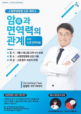김성수 소람한방병원 대표원장은 “오픈세미나는 암에 대한 다양한 환자들의 궁금증을 의료진과 소통하며 정보를 공유하는 열린 커뮤니케이션의 장”이라며 “이번 시간에는 암과 면역치료에 대한 환자들의 오해와 궁금증을 논문과 연구자료를 통해 보다 객관적으로 설명하고 쉽게 소개하려 노력했다”고 말했다.